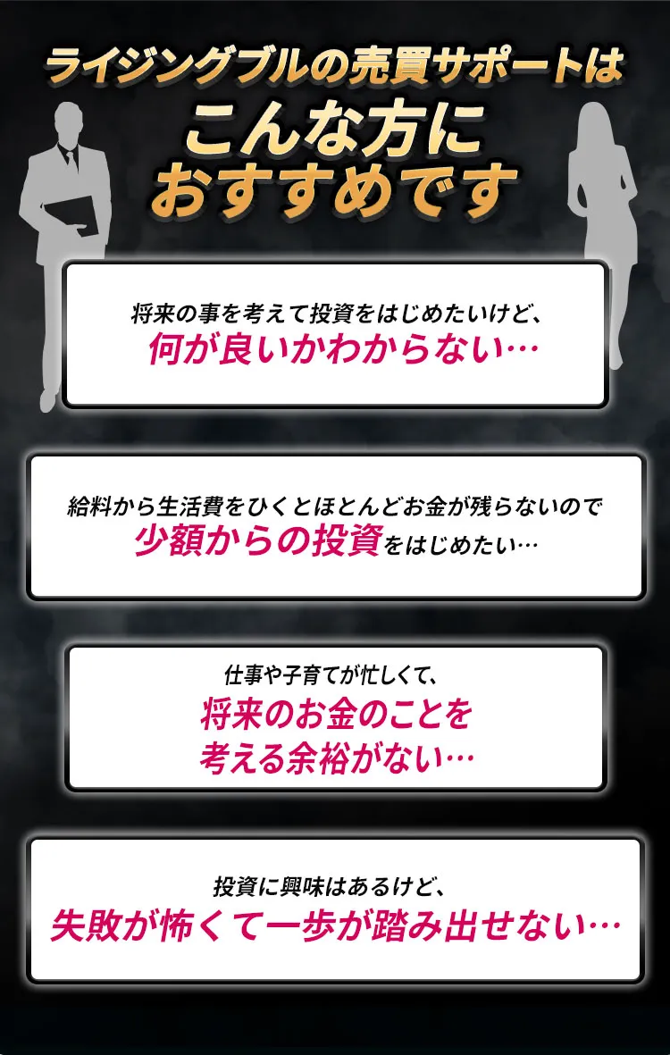 弊社では、お客様がそういう世界に入らないようにしながら、資産形成出来るように精一杯サポートしています。