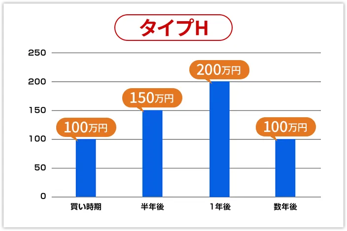 一時は上がっても、下がる銘柄も出てきます。(タイプH)