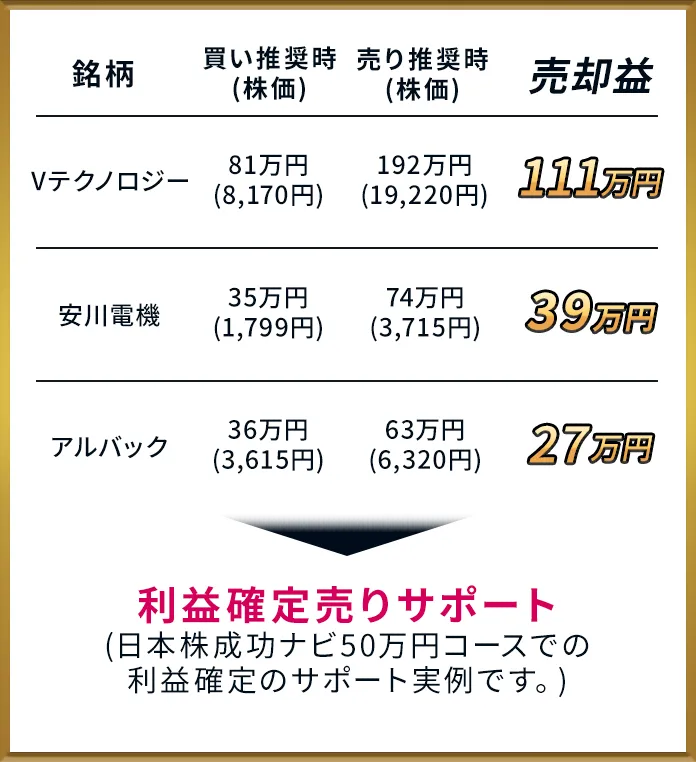※記載しているのは日本株成功ナビ(50万円コースほか)における推奨事例の一部です。弊社で実際の売買を行ったものではありません。