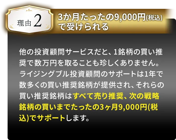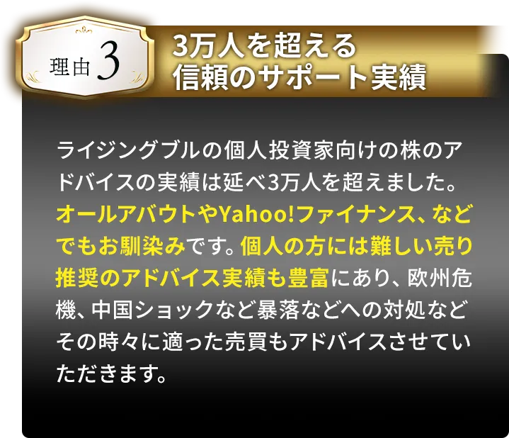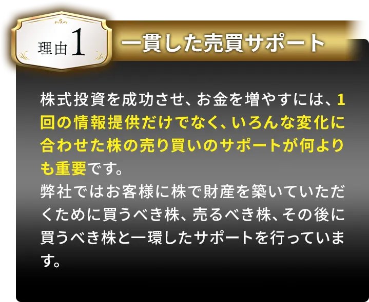 株価予想や銘柄情報記事の目的が「株価を予想する」や「株価の上昇を予想する」ことだとすれば、弊社のサービスは、「株式投資でお客様の資産を大きく育てていく」ことだからです。